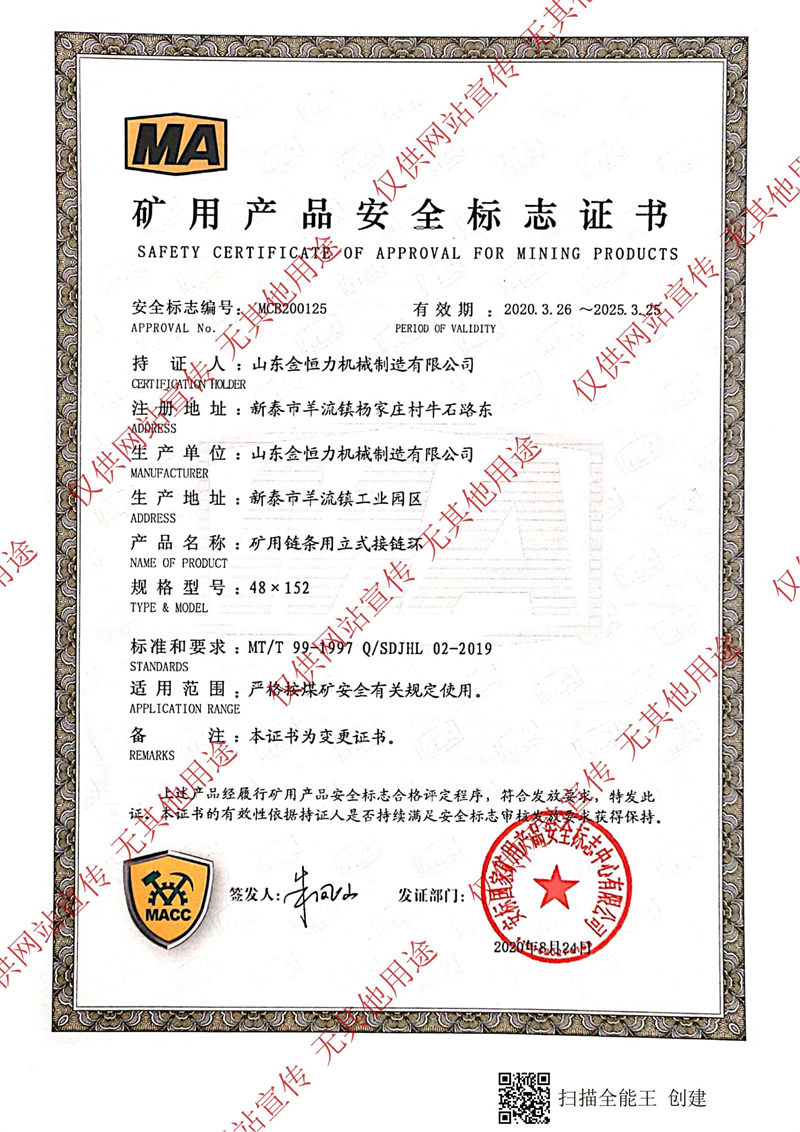 礦用產(chǎn)品安全標(biāo)志證書
